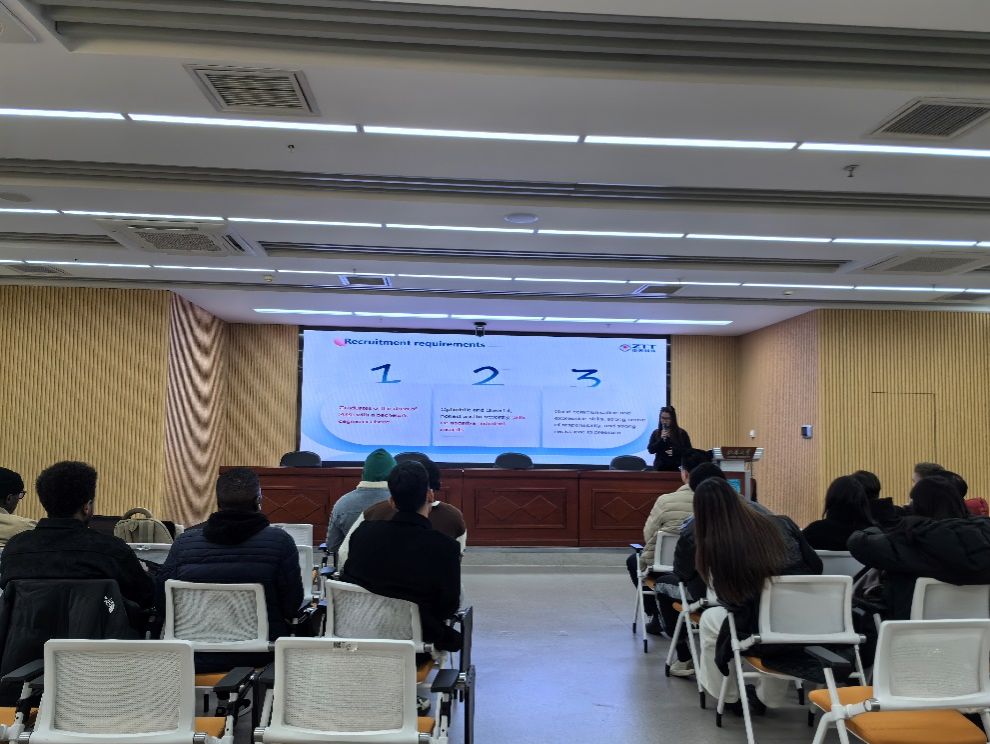 School of Management hosted an engaging and dynamic recruitment fair for its international MBA students on December 11 at 2:00 PM in Room 1501 of the Sanjiang Building. The event aimed to provide career development opportunities for international students and strengthen connections between the university and prominent global companies. The fair witnessed a successful turnout and served as a productive platform for interaction between the students and Zhongtian Technology Group (ZTT), a global leader in the power and telecommunications industry. The event commenced with a detailed introduction by Ms. Zhang Qiqi, HR Manager from Zhongtian Technology Submarine Cable Co., Ltd. (ZTTSC), a subsidiary of ZTT Group. Ms. Zhang presented an insightful overview of ZTTSC’s business operations, achievements, and its significant role in providing cutting-edge submarine and onshore power cable solutions globally. The presentation sparked keen interest among the attending MBA students, many of whom were eager to explore the career opportunities offered by ZTTSC in its rapidly expanding international markets. During her presentation, Ms. Zhang emphasized ZTTSC’s strong global presence and industry leadership. The company specializes in designing and manufacturing a wide array of advanced cables, including AC and DC submarine power cables, fiber-optic cables, umbilical cables, and dynamic cables for offshore floating wind farms. ZTTSC serves sectors such as offshore wind energy, power transmission, telecommunications, and oil and gas, making it a pivotal player in driving the global transition to a low-carbon future. Following the presentation, the floor was opened for a lively Q&A session. The international students, primarily enrolled in the School of Management’s MBA program, posed thoughtful questions regarding ZTTSC’s job requirements, career development paths, and company culture. Ms. Zhang provided detailed responses, elucidating the roles and responsibilities of positions such as After-Service Engineer (Foreign) and Overseas Sales Manager. During the networking session, students interacted directly with the ZTTSC representatives. They discussed job-specific requirements, the application process, and company expectations. Students also received guidance on submitting their resumes, either on-site at the fair or via email to the company’s designated HR contact. School of Management plans to host more recruitment events in the future, tailoring them to the diverse needs of its international student body. By partnering with industry leaders like Zhongtian Technology Group, the university aims to establish a robust platform for students to forge successful careers while contributing to global innovation and sustainability. |