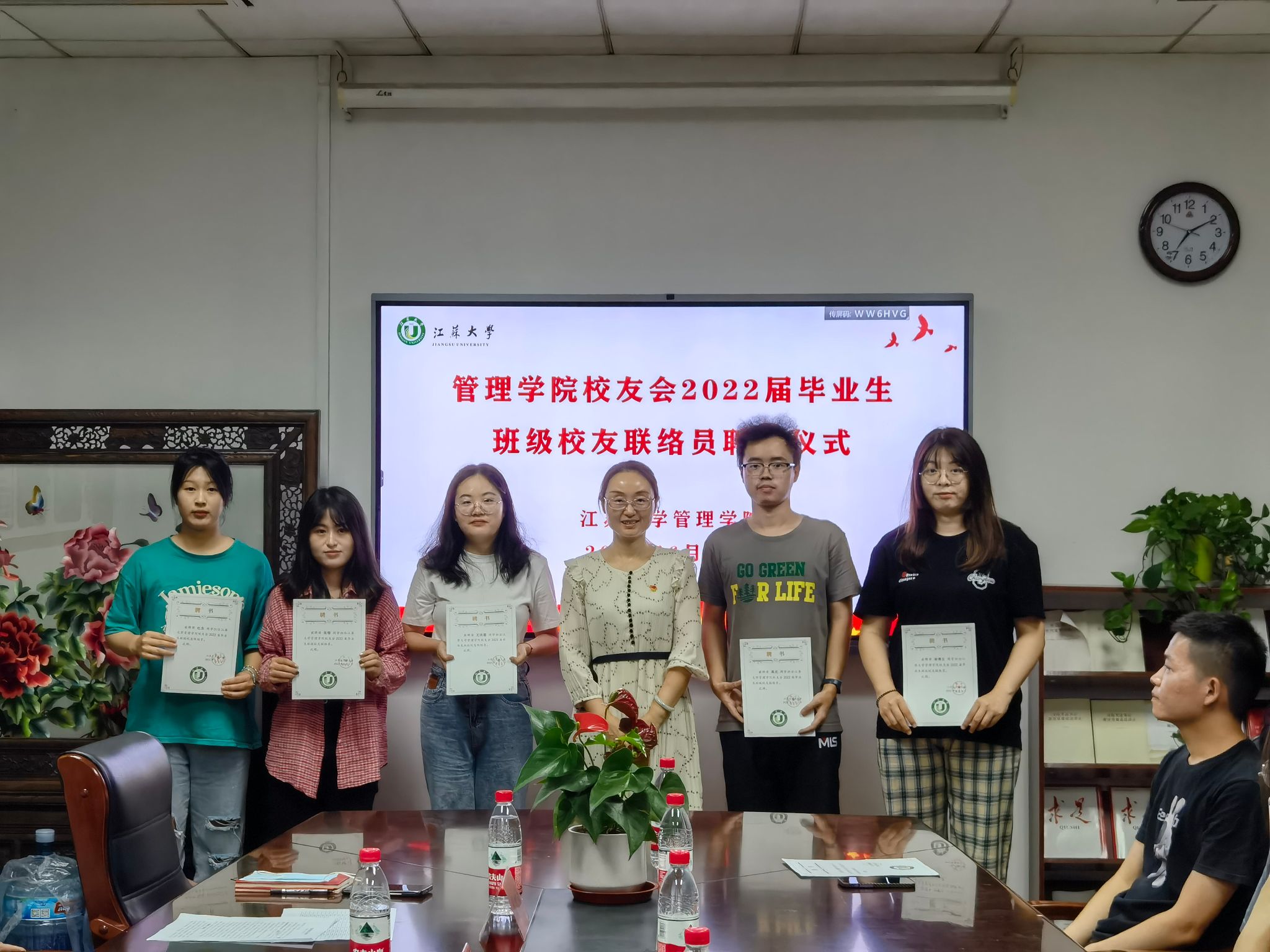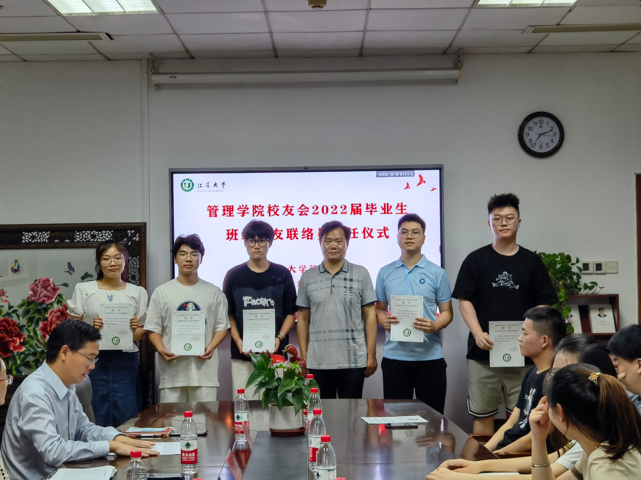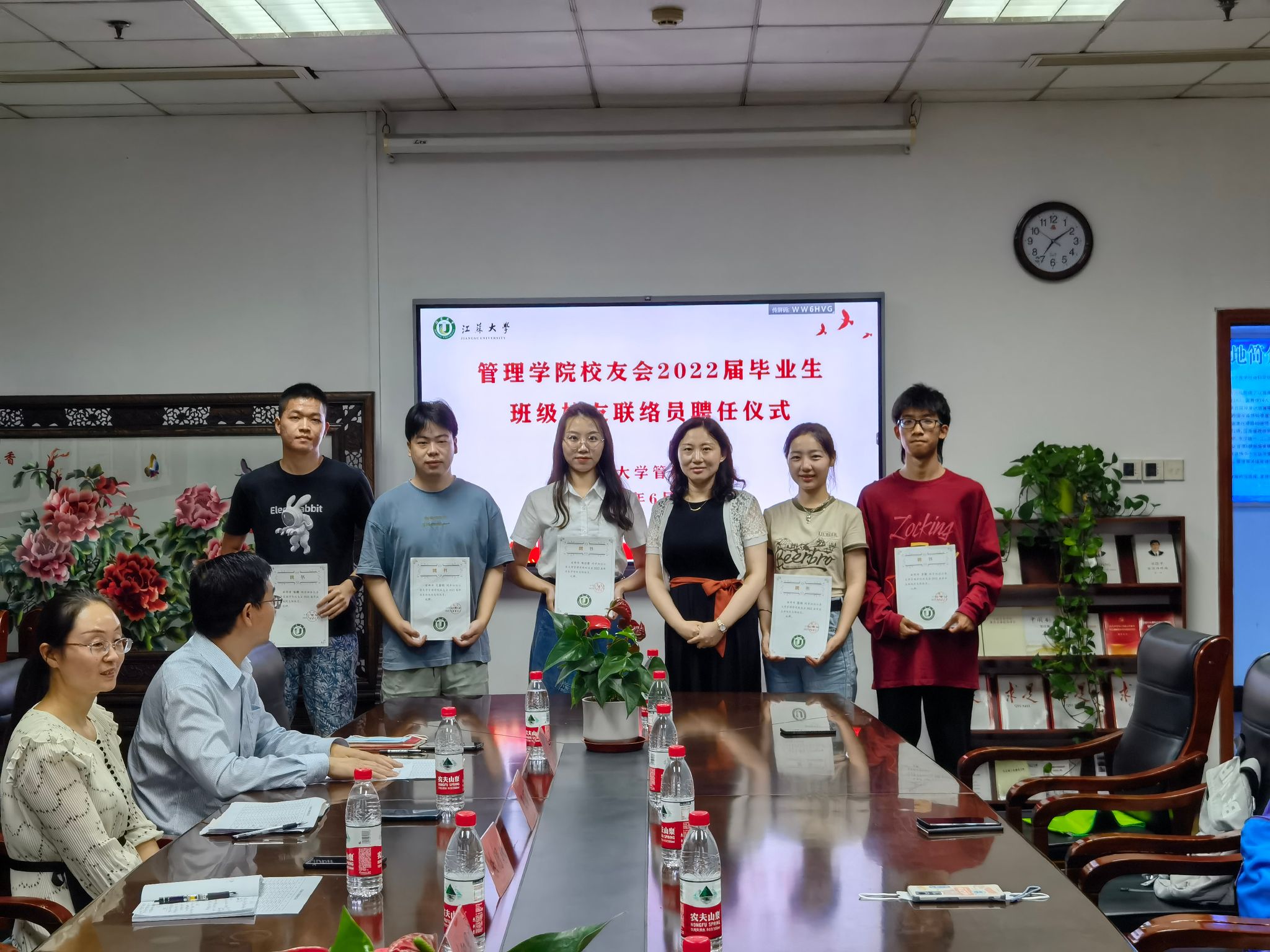 6月17日,半岛体育(中国)官方网站在三江楼1411会议室举行2022届毕业生班级校友联络员聘任仪式。半岛体育(中国)官方网站校友会会长、院党委书记王丽敏,半岛体育(中国)官方网站优秀校友、镇江市工信局党委委员、副局长朱明珠,半岛体育(中国)官方网站校友会副秘书长、院党委副书记、副院长欧阳国庆,校友周红光及2022届毕业生班级校友联络员参加仪式。仪式由2022届毕业生辅导员冯中超主持。