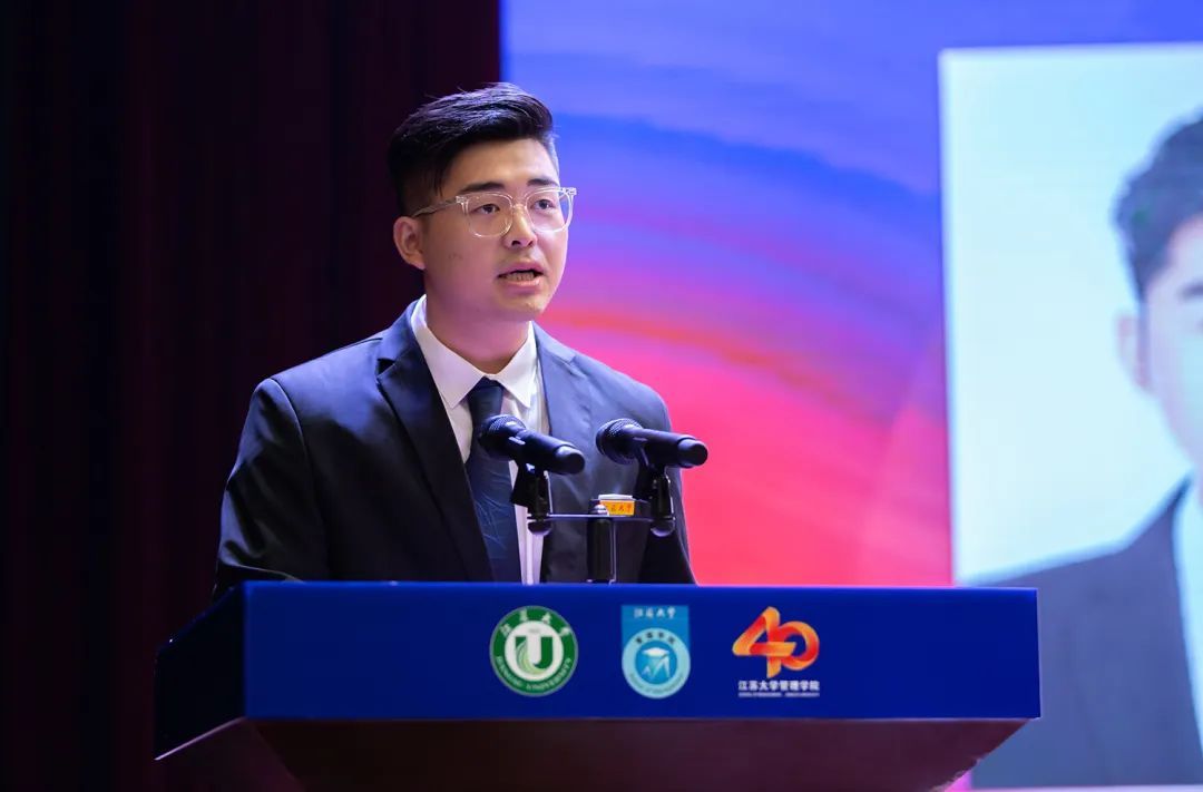 学生代表、半岛体育(中国)官方网站2021级硕士研究生陈志远在发言中说,入学一年来,自己在导师的谆谆教诲、师兄师姐们的照顾和帮助下,遨游在科研海洋,汲取前沿知识,培养学术素养,深切感悟到学院的争先创优氛围和学术科研精神。他将以学院办学40周年为新起点,认真学习、努力钻研,为管理事业高质量发展贡献青春力量。