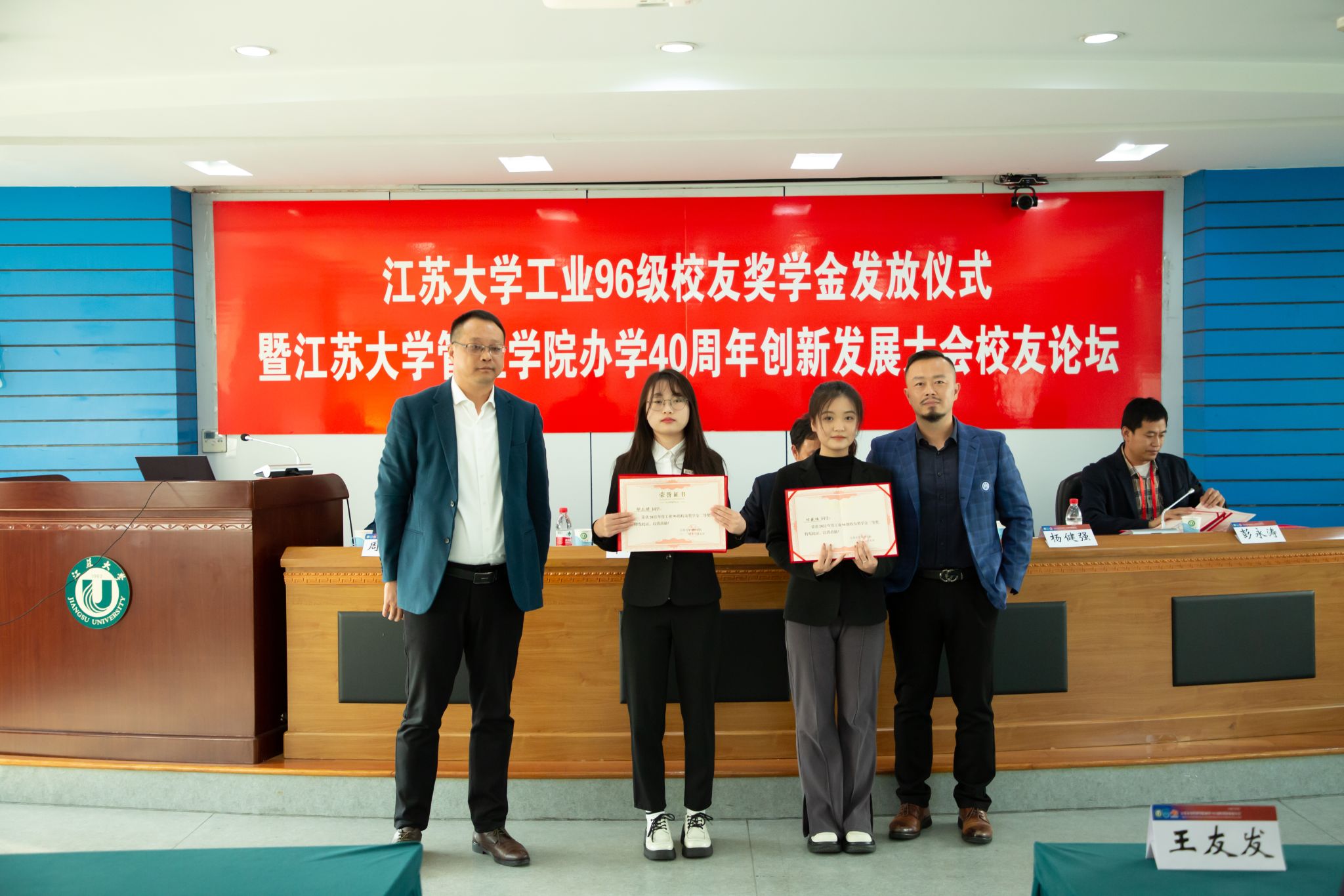 工业96级校友奖学金于今年由工业96级友集体捐资设立,委托江苏大学教育发展基金会运行管理,旨在进一步密切工业工程校友与母校的联系,增进校友与母校的感情,激励在校工业工程学生勤奋好学、积极进取、传承发扬工业工程精神。