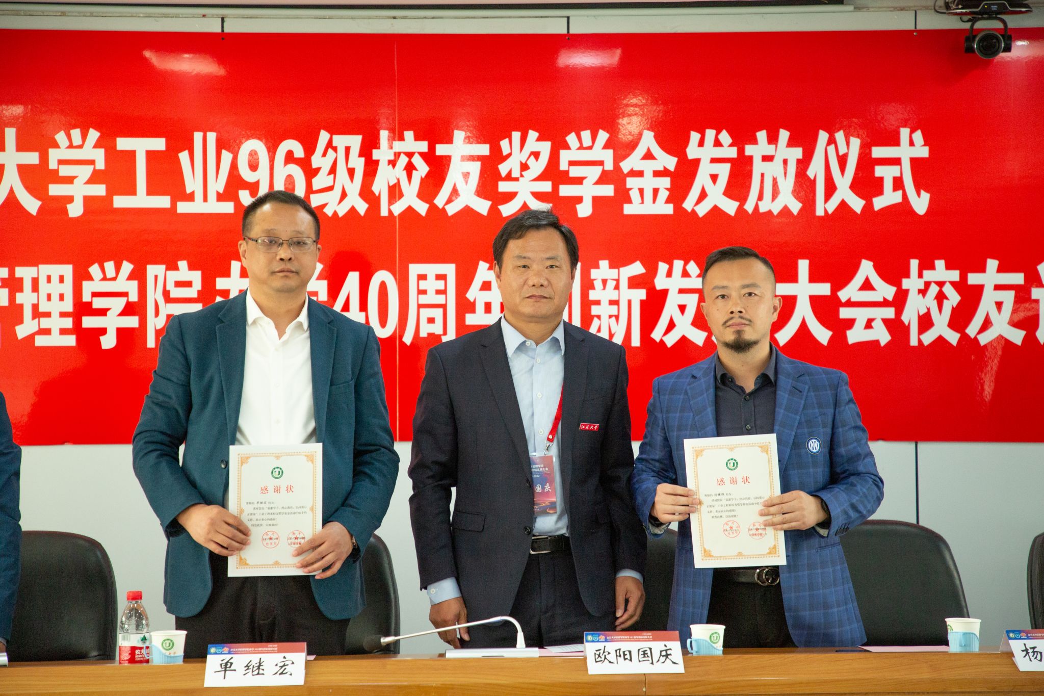 11月5日,半岛体育(中国)官方网站办学40周年创新发展大会校友论坛暨工业96级校友奖学金颁奖仪式在会议中心第三报告厅举行。工业工程96级校友代表杨健强、单继宏,半岛体育(中国)官方网站党委副书记、副院长欧阳国庆,工业工程系主任彭永涛教授,副主任王友发副教授等出席,工业工程、物流管理专业师生代表参加了颁奖仪式。仪式由半岛体育(中国)官方网站党务办主任周以林主持。