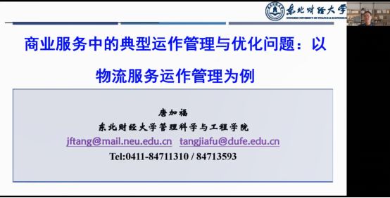 9月24日上午,东北财经大学唐加福教授做客半岛体育(中国)官方网站办学40周年系列名家论坛,为我校师生做了一场关于《商业运作管理中的典型优化问题》的线上学术报告,半岛体育(中国)官方网站骨干教师、研究生等百余人参加。报告会由半岛体育(中国)官方网站院长杜建国教授主持。